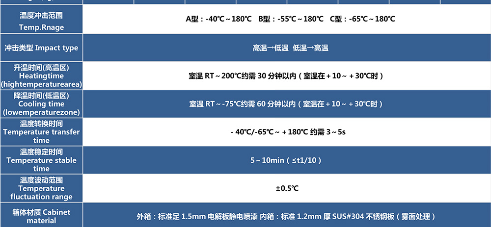 • 兩廂式冷熱沖擊試驗箱型號命名及參數表