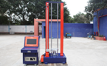 為模擬運輸過程中可能發(fā)生的撞擊,將被測樣品用堅硬支架緊固在試驗裝置上,支架支撐著試驗樣品的所有安裝面。采用半正弦波沖擊,設置最大加速度150gn,脈沖時間6ms,在安裝方位的三維方向上,正、反方向各沖擊三次,共經受18次沖擊。如果是大型電池或大型電池組,則采用最大加速度50gn,脈沖時間11ms的半正弦波沖擊。測試完畢評判依據同3.1.2。本試驗設備如圖3所示: